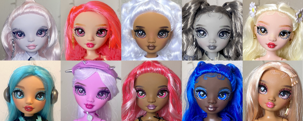 Dolls with almond eye type: Laurel, Holly, Sheryl, Vanessa, Carmen, Priscilla, Color & Create blue eyes, Color & Create purple eyes, Blu, Daria, Uma, Sabrina, Nicole, Lavender, Delilah, Coco, Berrie, Karla